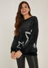 Learn moreYou're sure to have a holly jolly Christmas in this enchanting jumper. Created with soft black knit fabric, together with tinsel detailing to provide the look with festive sparkle, this statement piece is finished with dreamy stars and the ideal amount of stretch to the neckline, cuffs and hem. For a chic look, wear it with jeans and boots. Length: 64cm.