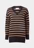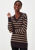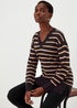Learn morePop fun colour into your collection with this uber cosy jumper. With a black base and horizontal stripes in beige, this piece is finished with cuffed sleeves for an added dash of snug and a gorgeous V neck for a flattering finish. A cold-weather essential, team it with jeans and trainers.
