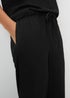 Elevate your new season style with these black wide leg trousers. Cut from a soft textured fabric, they drape beautifully, giving them an easy, relaxed silhouette with a modern feel. The elasticated drawstring waistband keeps the fit comfortable, while the wide leg shape adds movement and a touch of effortless style. Perfect for laid-back days or casual outings, they can be paired with the matching co-ord top to create a cohesive, comfortable set that looks instantly pulled together.