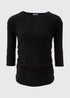 Our black textured top is the epitome of effortless chic, designed for the modern woman who embraces simplicity and style. Made from a luxurious blend of fabrics, this top exudes comfort and sophistication, ensuring you feel as good as you look. The textured pattern adds a touch of style with the 3/4 sleeves and wide neck making this top both comfortable and flattering. Pair with jeans and trainers for a casual everyday look or pair with a skirt and heels for a night time outfit.