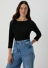 Learn moreOur black textured top is the epitome of effortless chic, designed for the modern woman who embraces simplicity and style. Made from a luxurious blend of fabrics, this top exudes comfort and sophistication, ensuring you feel as good as you look. The textured pattern adds a touch of style with the 3/4 sleeves and wide neck making this top both comfortable and flattering. Pair with jeans and trainers for a casual everyday look or pair with a skirt and heels for a night time outfit.