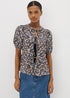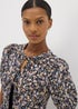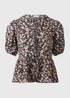 Black Tie Front Peplum Floral Blouse