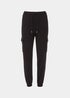 Putting a prettier spin on classic joggers, say hello to this lovely pair in black. Soft and snuggly, signature design features include cuffed legs and a stretchy waistband with silver trim drawstrings for a personalised fit. Two signature cargo-style pockets to the legs complete the pair. Partner with your favourite hoodie or sweatshirt. Model Height: 5ft 8.