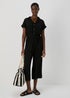 Learn moreOur Black Utility Jumpsuit in a striking black hue is the epitome of modern workwear. Crafted from high quality fabrics, this jumpsuit exudes sophistication and practicality. The utilitarian design features a v-neckline, short sleeves, cropped leg and a relaxed fit that flatters all body types. Featuring a tie belt detailing, button up fastening and two roomy side pockets providing ample storage for your essentials. Pair with sneakers and a denim jacket for a casual, everyday look or dress it up with heels and a statement necklace for a night out.