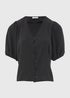 Learn moreThis Black V-Neck Button Front Blouse is a versatile and stylish addition to any woman's wardrobe. This blouse is crafted from a lightweight and comfortable fabric, making it perfect for any occasion. Featuring a elegant v-neck, button-down front, and short puff cuff sleeves, this blouse is sure to keep you looking elegant wherever you go. Pair with your favourite jeans and heels for a night out on the town or tuck it into a skirt and add a statement necklace for a chic and polished look.