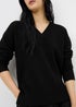 Elevate everyday dressing with this effortlessly versatile knit designed for comfort and ease. Crafted in classic black, this jumper features a flattering V-neckline that adds a touch of softness to the shape. The ribbed hem and cuffs give gentle structure, helping the piece sit neatly while still offering a laid-back feel. Cosy, smooth and easy to style, it works beautifully as an everyday layer you can dress up or down across the seasons.
