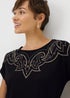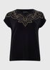 Add a touch of edge to your everyday look with this Black Western Stud T-Shirt. Featuring eye-catching stud detailing and subtle western-inspired flair, this tee brings effortless attitude to your wardrobe while keeping you comfortable throughout the day.