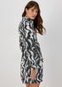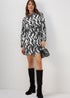 Learn moreThis stylish black dress features white streaky patterns, creating a modern and sophisticated look. The included belt adds a flattering touch, making it perfect for various occasions. Make a statement with this classic combination of black and white in a trendy, easy-to-wear dress.