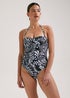 Learn moreHeat up your holiday wardrobe with this chic swimsuit. Styled with a contrasting black and white leaf print, the timeless swimming costume features a bandeau neckline, complete with slim halter-neck tie fastenings for added elegance. Perfect for pairing with a floaty kimono and a floppy hat for added style points. Model Height: 5ft 9 1/2.