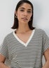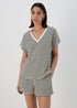 Our knit look Co Ord V neck top in Black and White is a versatile piece that can be dressed up or down. Featuring a striking striped pattern, this top is perfect for adding a touch of personality to your look. The V-neckline is flattering on any face shape, and the relaxed fit is comfortable and easy to wear. Pair with matching shorts.