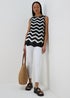 The Black Zig Zag Crochet Vest is a must-have for your wardrobe this season. This stunning piece is crafted from high-quality yarn, ensuring both comfort and durability. The intricate zigzag crochet look pattern adds a touch of bohemian flair to your outfit, making it perfect for any occasion. Pair with a blouse and tailored trousers for a smart, office-appropriate outfit or wear as a beach cover-up over your favourite swimsuit.