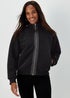 Learn moreThe epitome of style and warmth, this jacket is crafted with a cosy and ribbed borg fabric, providing comfort and insulation during the colder months. The versatile black colour pairs effortlessly with any outfit, offering an adaptable addition to your wardrobe. Meanwhile, the zip-up design combines fashion and functionality, making it perfect for on-the-go convenience. A snuggly funnel neck and cuffed detailing completes the look. Model Height: 5ft 10.