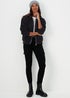 The epitome of style and warmth, this jacket is crafted with a cosy and ribbed borg fabric, providing comfort and insulation during the colder months. The versatile black colour pairs effortlessly with any outfit, offering an adaptable addition to your wardrobe. Meanwhile, the zip-up design combines fashion and functionality, making it perfect for on-the-go convenience. A snuggly funnel neck and cuffed detailing completes the look. Model Height: 5ft 10.