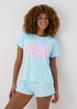 Learn moreStep into comfort with nostalgia in this Blue 1989 Pyjama Set. Crafted from a cosy fabric that promises to keep you comfortable throughout the night, this set features a charming short-sleeved top with “1989” emblazoned in vibrant pink for a pop of retro flair. Complementing the top are playful shorts boasting an adorable white paper plane print against a serene blue background, perfect for dreaming big. An elastic waistband ensures a snug fit without compromising on comfort. Ideal for those leisurely weekends or cosy nights in, this pyjama set is not just sleepwear—it’s a statement piece that celebrates fun and relaxation in equal measure.