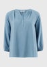 Blue 3/4 Sleeve Popover Blouse