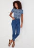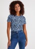 Fancy taking a walk on the wild side? You can do just that with this statement T-shirt, styled with a playful animal print all over. With a lush blue colour to the base, it's fashioned with 100% cotton fabric and comes with comfy short sleeves, together with a sleek round neckline. Perfect for all-year wear, it can be teamed with shorts, jeans and jeggings alike. Model Height: 5ft 9.
