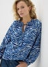 Blue Animal Print Tie Neck Blouse