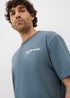 Casual yet striking, this storm blue t-shirt is crafted from soft jersey fabric for all-day comfort. Cut in a regular fit with short sleeves and a classic crew neckline, it features subtle chest detailing up front and an oversized flower graphic on the back for a bold, statement finish.