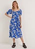 Learn moreBold and beautiful! Styled with a stunning blue base, this dress features a timeless white floral print, a flattering square neck and puff sleeves for added interest. Cut from a soft and cosy material, it includes a belted waist for a flattering finish. Length: 120cm. Model Height: 5ft 9.