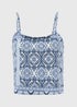 Look effortlessly stylish in our co ord aztec cami. This top is bound to turn heads with its vibrant Aztec print in shades of white and blue. Crafted from lightweight fabric, it's perfect for those warm days. Pair it with the matching item to complete the look, or dress it down with your favourite denim. With this top, you'll be sure to stand out from the crowd!