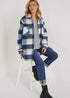 An on-trend autumn/winter staple that you're sure to love, this stylish shacket combines the look of a shirt with the comfort of a jacket. As well as the classic shirt-inspired collar and cuffed long sleeves, the shacket is styled with silver popper fastenings and twin chest pockets against the blue check base. The perfect extra layer for your smart/casual outfits. Length: 84.5cm. Model Height: 5ft 9.