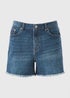 • Blue Dark Wash Frayed Hem Denim Shorts