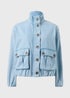 Update your everyday outerwear with this blue denim utility jacket, combining practical details with a modern edge. Cut in a structured denim finish, it features a funnel neckline for a clean, contemporary look and a mock horn button front for a classic touch. Two front utility pockets add functionality, while the elasticated hem and cuffs help define the shape for easy layering.