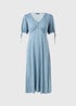 Refresh your new season style with a hint of vintage charm. Crafted from sumptuously soft viscose for a luxurious, lightweight feel, a charming ditsy floral print adorns a blue base for a contrast finish. Cut to a flattering midi length, it features short puff sleeves with tie trims, a plunging v-neck, and a floaty relaxed fit.