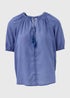 Learn moreStep out in style with our blue dobby boho tie front blouse, a stunning piece that exudes effortless style and bohemian charm. With a relaxed fit, tie front, and short sleeves, this blouse ensures a comfortable fit for everyday wear. The stunning blue colour with added dot detailing all over creates a charming blouse which is perfect for dressing up or down. Dress it up for a special occasion by pairing it with statement earrings, a chic clutch, strappy heels ad a midi skirt or for a casual daytime look, team it with a denim jacket, wide leg trousers, trainers, and a cross-body bag.