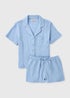 Unwind in comfort with this soft blue double cloth pyjama set, crafted from 100% cotton. The short-sleeves PJ top features a classic button-through front, smart collar and a single chest pocket for a timeless look. Matching shorts offer a relaxed fit with a stretchy elasticated waistband. Perfect for warm nights or lazy mornings, pair with cosy slippers or a lightweight robe for ultimate relaxation.