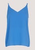 Say hello to versatile summer style with this sleek cami top. In a chic blue shade, this lightweight flowing top features double strap detailing alongside a V-neck and back and half lining. Pair with smart trousers or a midi skirt for special occasions, or dress down with denim shorts and sandals for balmy summer days. Model Height: 5ft 9 1/2.