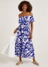 In a classic mix of blue and white, this floral dress is a must for any woman's smart wardrobe. Cut to a classic midi length and featuring a chic Bardot style for versatile wearing options, it's finished with a tie waist to comfortably cinch you in.