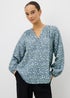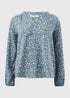 Bring a fresh, feminine touch to your wardrobe with this beautiful blue popover blouse. Crafted from sumptuously soft fabric, it features an all-over floral print. Additional style notes include lightly gathered shoulders, a notch neckline and cuffed long sleeves for a polished finish.