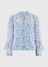 Soft, romantic and easy to wear, this blouse adds a vintage-inspired touch to everyday looks. Crafted from lightweight chiffon, it’s styled in a light blue hue with a delicate floral print for a timeless feel. Statement ruffle trims bring gentle movement, while the v-neck and button-through front keeps the silhouette refined yet relaxed. A cami top is also included to be layered beneath. Perfect for dressing up denim or tailoring alike, it’s a versatile piece you’ll reach for season after season.