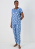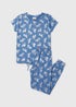A delightful blend of comfort and style for your cosy nights, this deep blue set features a touch of shimmering foil, adding a playful twist to your bedtime attire. The exotic animal motifs dance across the fabric, infusing elegance with a hint of wildness. Crafted from soft and comfortable material, this set promises warmth and relaxation. Whether you're unwinding after a long day or enjoying a lazy weekend morning, our blue animal print pyjama set will keep you feeling stylish and comfortable.
