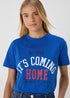 Show off your love for all things football in our striking Blue Football T-Shirt. Part of our Ladieswear collection, this vibrant blue tee is sure to turn heads wherever you go. Crafted with a soft and comfortable cotton fabric for all-day wear. This tee features a bold football slogan, designed with a crew neckline and short sleeves for a classic t-shirt silhouette. Pair it with jeans and trainers for a casual yet stylish daytime look or denim shorts and sandals for a summer weekend look.