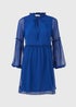 Blue Frill Tieneck Dress