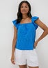 Blue Frilled Broderie Cami Top