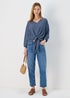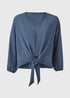 Blue Front Tie V Neck Blouse