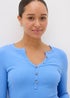Elevate your casual wardrobe with our Henley Collar Long Sleeve Top in blue. This classic design features a soft, breathable fabric that ensures all-day comfort, with the signature Henley collar adding a touch of timeless style. The buttoned placket allows for versatile wear, whether you prefer a more relaxed, open neckline or a cosy, closed fit. The rich blue colour provides a vibrant pop, perfect for layering or wearing solo.