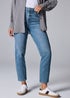 Elevate your denim collection with our effortlessly chic blue mid wash mom style jeans. Designed to flatter your figure, these jeans boast a relaxed mom fit that's both comfortable and stylish. Crafted from high-quality fabric with a touch of stretch, these jeans provide a perfect balance between structure and comfort.