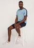 Learn moreSpruce up your comfy casuals with this timeless tee. Crafted from 100% cotton for all-day comfort, the T-shirt is styled with a blue base and finished with navy panels to the side, alongside signature embroidery to the chest. Additional style notes include short sleeves, together with a crew neckline. Perfect for pairing with your favourite jeans. Model Height: 6ft 2.
