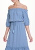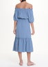 Learn moreCreate a summery boho-chic look with this timeless blue midi dress. Cut with a billowing silhouette and Bardot neckline, it features the signature seersucker texture and is styled with cropped sleeves and an elasticated tassel tie waist to cinch you in at the middle. A tiered hem adds shape and ensures a feminine finish. Model Height: Approx 5ft 8.