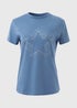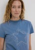 A wardrobe staple, this easy-going tee is a must-have in your summer line-up. With a striking star print against a deep blue backdrop, this piece will add a touch of playful charm to your casual looks. Crafted from premium cotton, it ensures a comfortable wear all day long.  Pair it with denim shorts and sandals for a relaxed summer vibe or tuck it into a high-waisted skirt and complete the look with sneakers for a casual-chic ensemble.