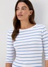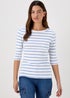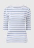 This T-shirt features classic white and blue stripes that create a stylish and versatile look. With a perfect fit and 3/4 sleeves, it offers both comfort and a touch of elegance. Ideal for casual outings or relaxed days, this shirt provides a smart yet effortless appearance.