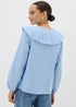 Blue Stripe Embroidered Oversized Collar Shirt