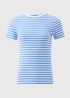 Learn moreOur Blue Stripe Fitted T-Shirt is a must-have staple for your casual wardrobe. This classic striped T-shirt in white and blue is made from pure cotton for a soft and comfortable feel. In a flattering fitted style, with a round neckline and short sleeves. Pair it with jeans and trainers for a casual day out or tuck it into a skirt and add heels for a more dressed-up look.