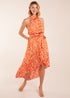 Blue Vanilla Abstract Print Halter Neck Midi Wrap Dress