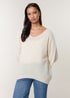 Blue Vanilla Beige Fluffy Textured V Neck Jumper