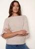 Blue Vanilla Beige Knitted Frill Sleeve Batwing Jumper